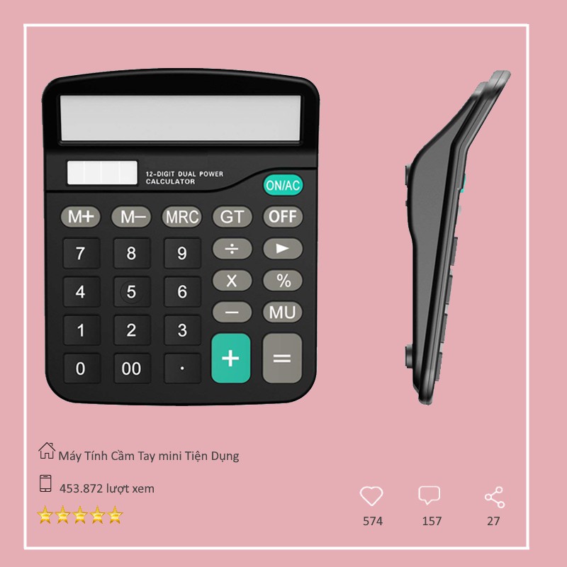 Miễn phí đổi trả nếu bán hàng kém chất lượng. Hiện tại Máy Tính Cầm Tay Tiện Dụng Dùng Năng Lượng Mặt Trời đang được giảm giá chỉ còn 54,870đ. Số lượng có hạn hãy nhanh tay đặt khi còn hàng bạn nhé