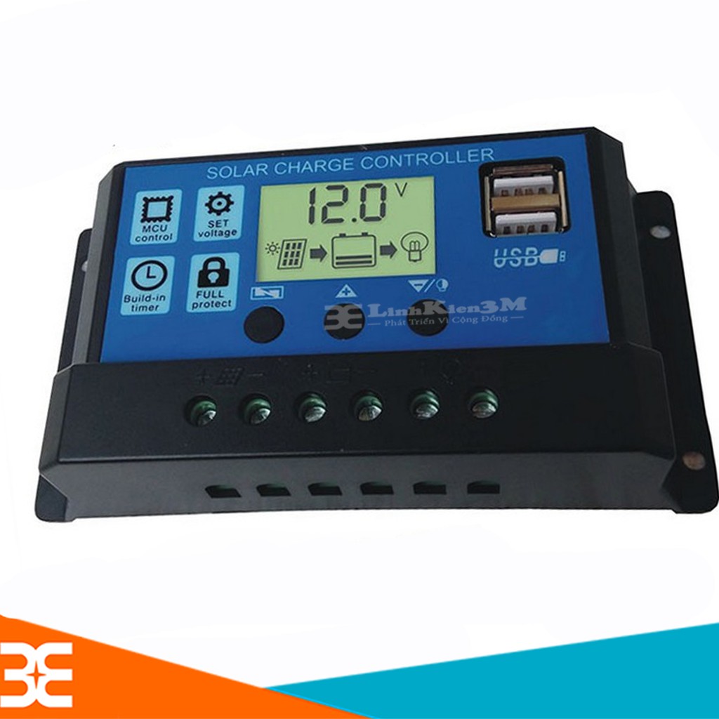 Bộ Điều Khiển Sạc Pin Mặt Trời 12/24V 30A Có USB 150x78x35mm free ship